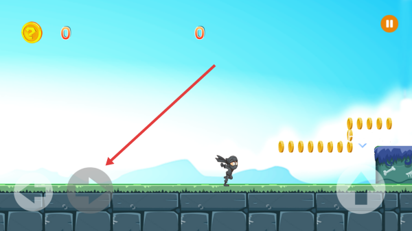 3、游戏中操控左侧方向按钮移动忍者,沿途拾取金币,留意障碍,稳步推进关卡,通过流畅操作提升冒险进度。