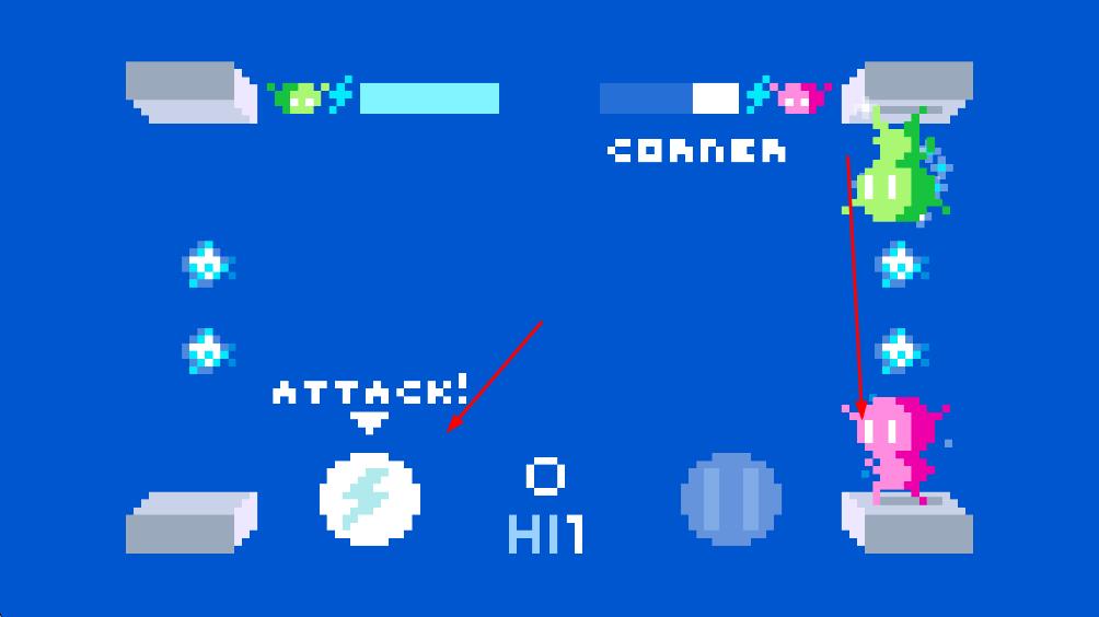 2、留意ATTACK!提示,点击对应攻击按钮,持续向对手发起进攻,压制对手血量。