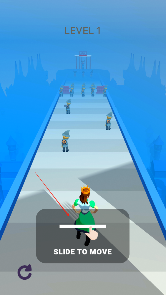 1、滑动屏幕控制女王收集前方出现的矮人,收集得越多越好,不在滑动屏幕女王则会停下脚步。