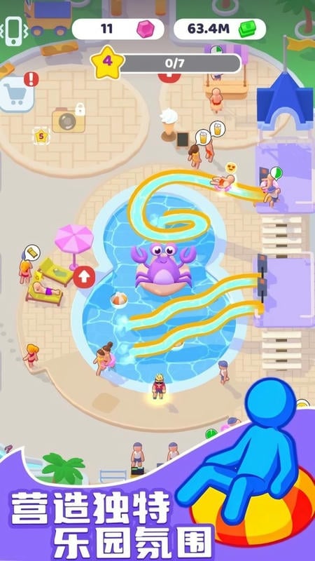 水上乐园大亨是一款极具沉浸感的模拟经营游戏,让你化身为水上乐园的经理,亲手打造并运营属于自己的梦幻水上乐园,你可以尽情发挥创意设计滑水道、游泳池及各类水上设施,通过吸引游客、提供优质服务赚取收益,同时还需妥善管理资源、雇佣员工,应对各种运营挑战,让乐园在你的打理下日益繁荣。