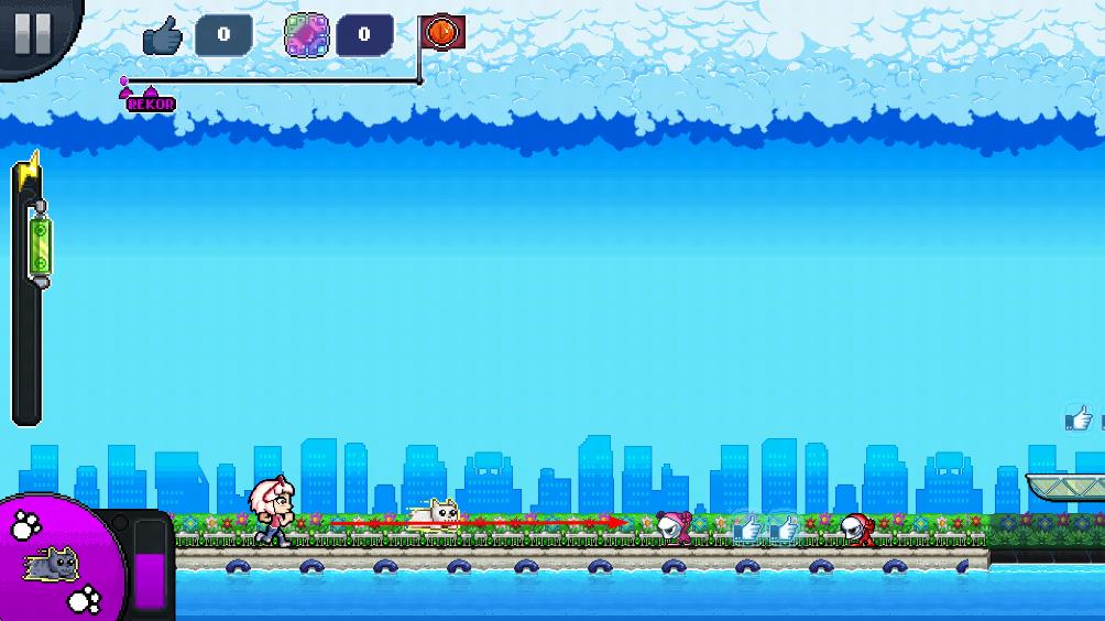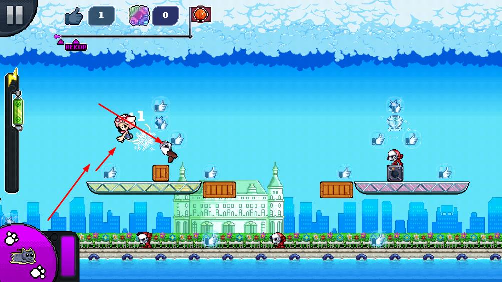 1、操控角色在城市赛道移动跳跃,收集点赞图标提升分数,为击败敌人蓄力。