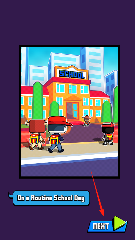 1、看到On a Routine School Day的画面,点NEXT按钮推进剧情,看看学校日常会发生啥故事开启后续游戏内容。