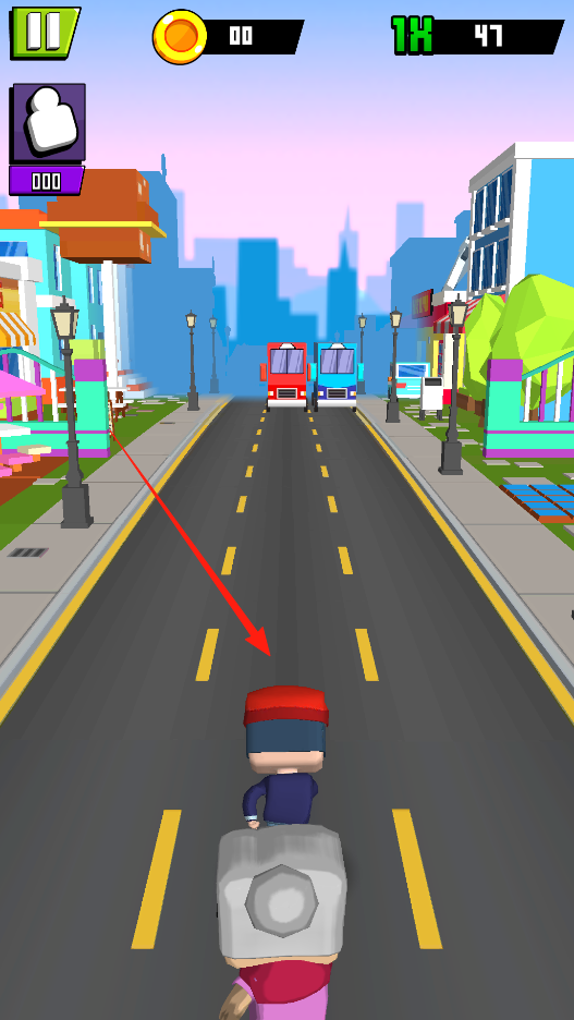 1、收集金币提升分数:需要不断努力收集更多金币,以此增加分数,金币还能用来升级角色和购买各种一次性物品,帮助躲避障碍物的攻击,让跑酷提升生存时间和得分。