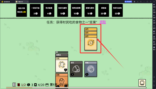 3、游戏内置丰富多样的卡牌种类,包括动物、食物、矿物等资源卡牌,满足村庄建设、发展和冒险探索的各种需求。