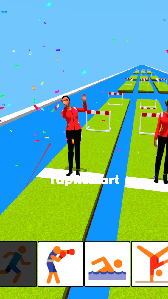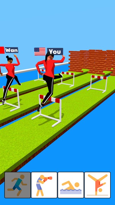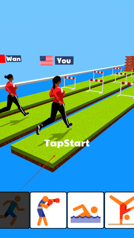 1、点击开始进入赛道,角色自动向前奔跑,注意观察前方障碍,前方是跨栏就化身跨栏运动员。