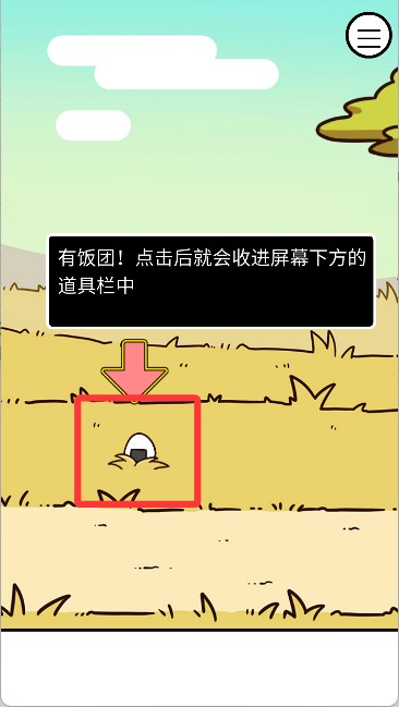 3、发现了一个饭团,点击后就会收进屏幕下方的道具栏中。