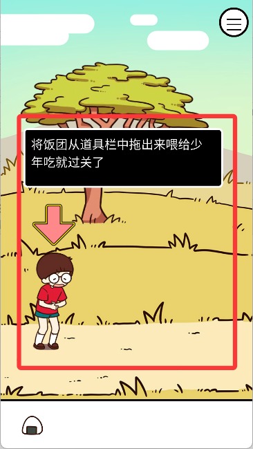 4、将饭团从道具栏中拖出来喂给少年即可过关。