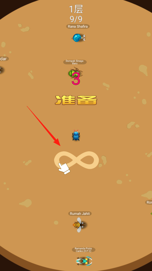 2、比赛准备阶段,甲虫下方有∞形路线提示,按照指引用手指滑动屏幕,让甲虫沿着这个路线移动,等倒计时结束就正式开跑,和对手竞争。
