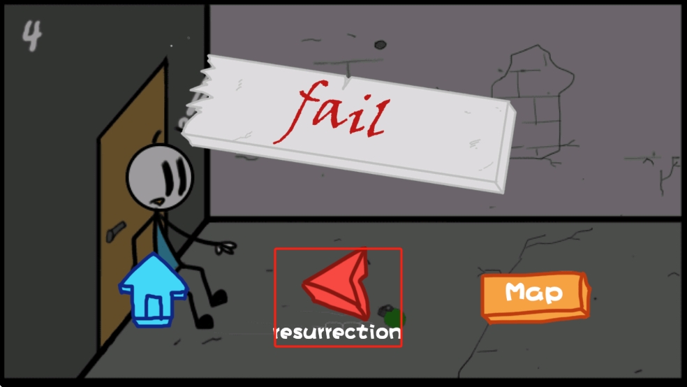 3、若流程出错触发了fail的提示,点击红色复活按钮重启挑战,凭借此前尝试积累的经验,调整行动细节。