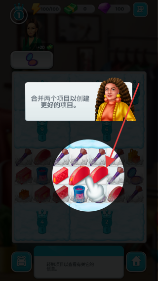 2、在游戏操作中,根据提示合并两个项目以创建更好的项目,将相同的物品进行合并,获得更优质的道具,助力游戏进程。