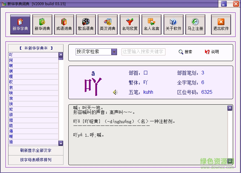 新华字典词典是pc端的一款绿色小巧的字词查询工具,可以在无网络状态下快速查询字词、拼音、笔画、释义等,功能强大使用简便,绿色资源网诚意推荐!