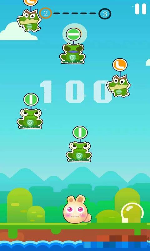 2、第一关开局,有提示教操作,按照在屏幕上滑动气球内符号以消除气球,用手指滑动对应符号,把气球消掉保护下方小兔子,别让气球砸到它。