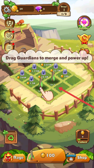 1、游戏内拖动场上同类型Guardian,通过合并操作提升它们的等级与能力,助力守护阵地。