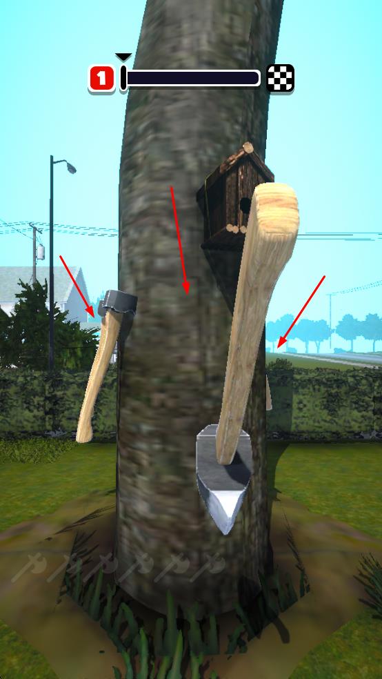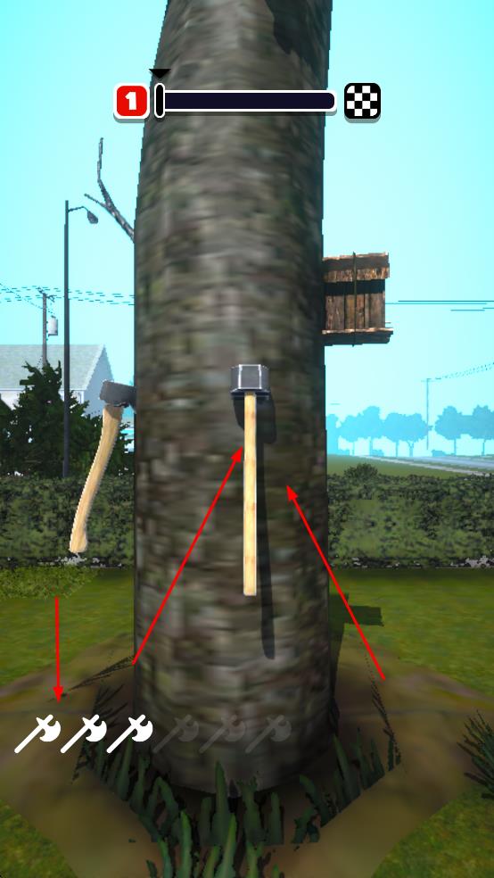 2、依次投掷斧头并借助斧头向上移动,留意树干上的障碍,合理规划每一步投掷位置。