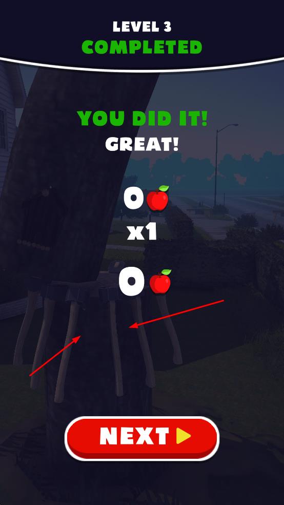 1、多斧免费点击投掷:免费为玩家提供多把斧头,只需点击屏幕即可扔出斧头砍伐树木,操作直观便捷,每一次投掷都需精准把控,又让玩家能快速沉浸在砍树的节奏中。