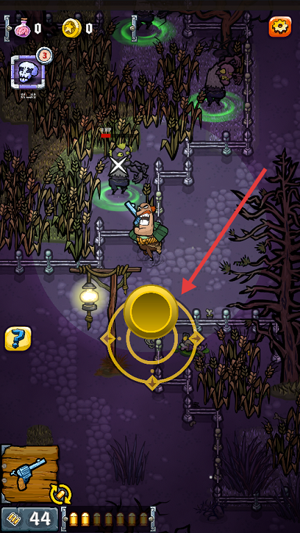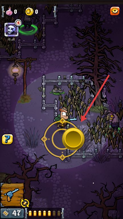 1、点击屏幕任意位置移动角色,自动攻击范围内的僵尸目标。
