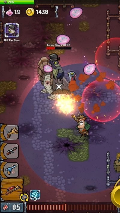 1、荒诞武器库:包含20+种创意武器,从传统猎枪到会下蛋的鸡枪各具特色,每种武器都有独特的攻击动画和10级成长路线。