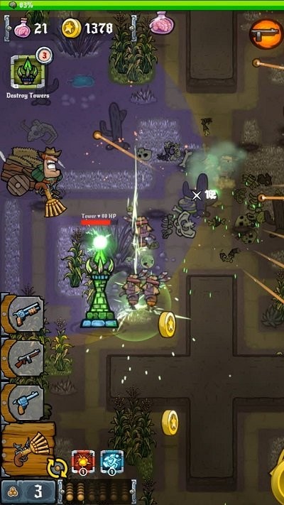 2、击败僵尸获取金币和经验值,用于解锁更强力的武器库。
