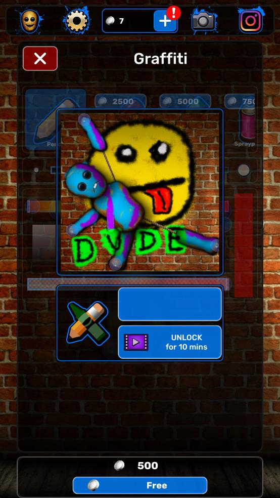 涂鸦娃娃是一款主打自由创作的暗黑系休闲作品,暗色调笔触勾勒出独特氛围,玩法简单易上手却充满创意,玩家可将娃娃扔向墙面、地面甚至悬空角落,再用各色颜料为其染色,泼洒的墨痕、喷溅的色块、手绘的线条,全由自己掌控,没有固定规则束缚,无论是打造诡异涂鸦还是个性图案,都能自由实现。