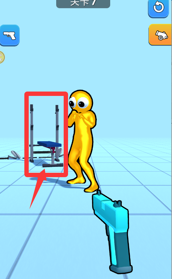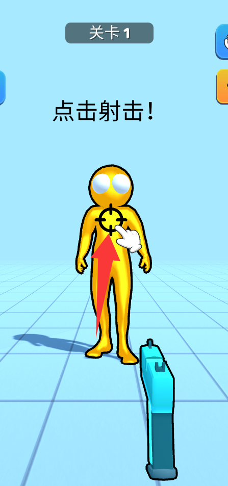 2、点击屏幕就可以射击了,把这个小黄人打飞。