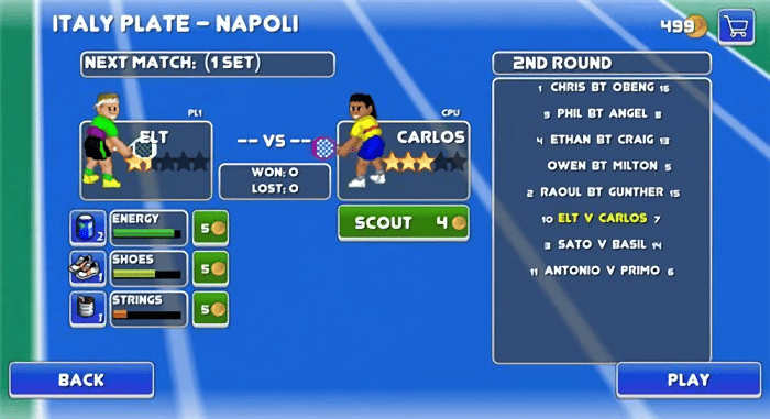 像素网球冠军最新版以复古画风重现球场激情,带来耳目一新的运动体验,还原真实击球手感,每次挥拍都能感受到力量与角度的变化,个性化系统让每位选手都独具特色,从服装搭配到技能组合,打造专属网球明星,多种比赛模式轮番登场,满足不同竞技需求。