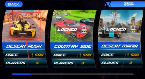 2、从豪华超跑、经典肌肉车等六大类别中挑选初始座驾,每款车型配备详细性能参数说明。