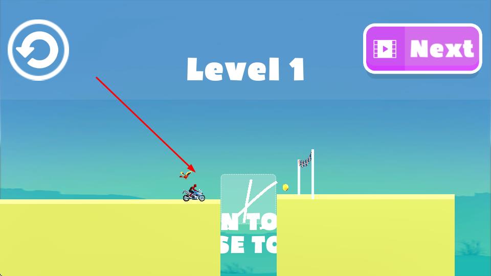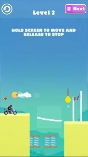 2、在关卡中,操控摩托跨越障碍如沟壑,朝着终点旗帜行驶,把控行驶节奏避免失误。