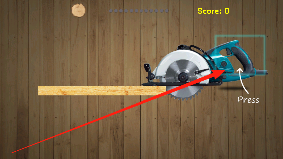 1、推动圆锯工具,熟悉圆锯的操作方式,了解木头切割的基本逻辑,准备开启切割挑战。