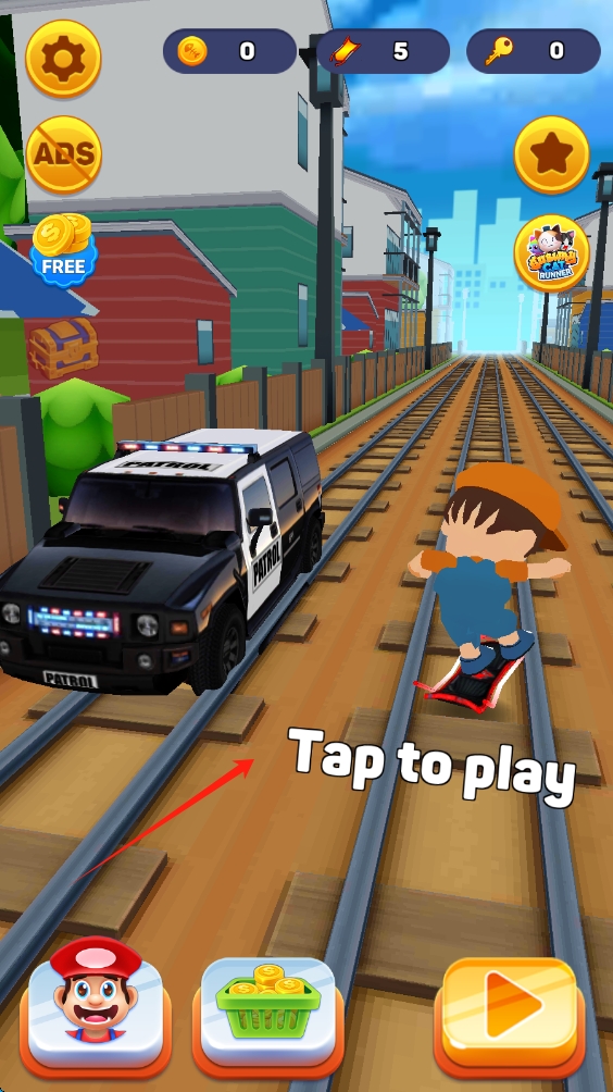 1、点击Tap-to-play,开启跑酷冒险,在轨道场景中躲避警车,展开刺激奔跑,点击开始游戏。