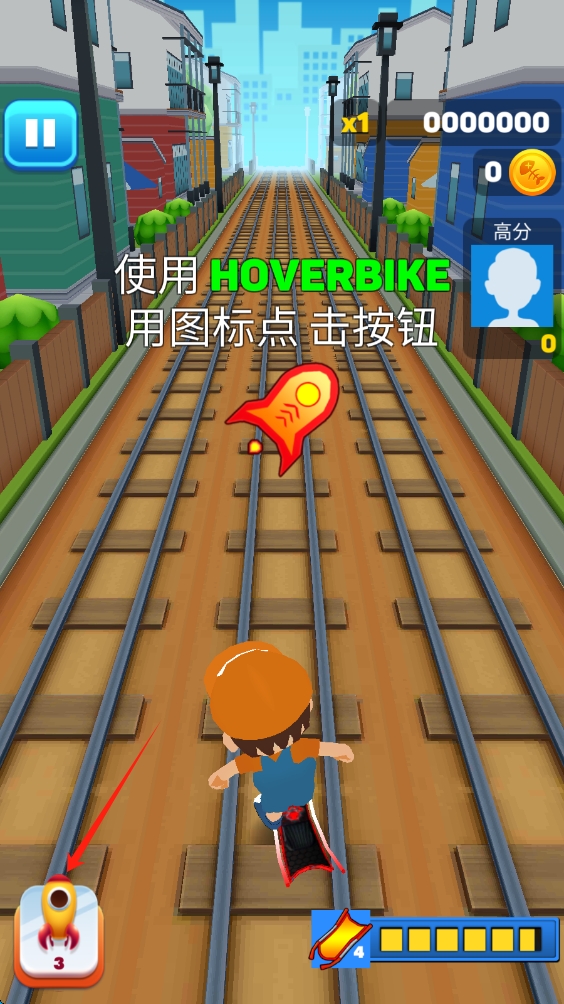 3、点击道具按钮,使用HOVERBIKE,借助道具能力,轻松应对跑酷中的挑战,点击使用道具。