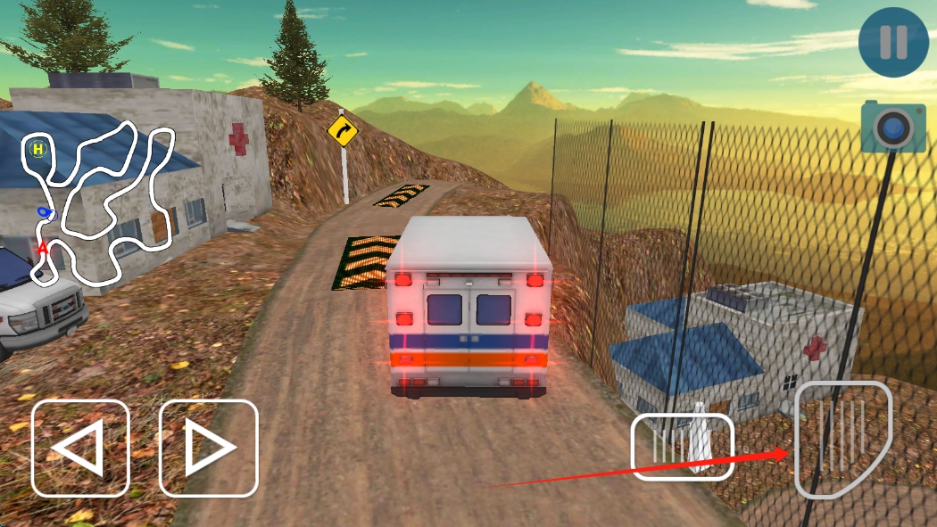 3、驾驶时,操控救护车在山路行驶,避开障碍,按任务要求完成救援目标,点击加速车辆。