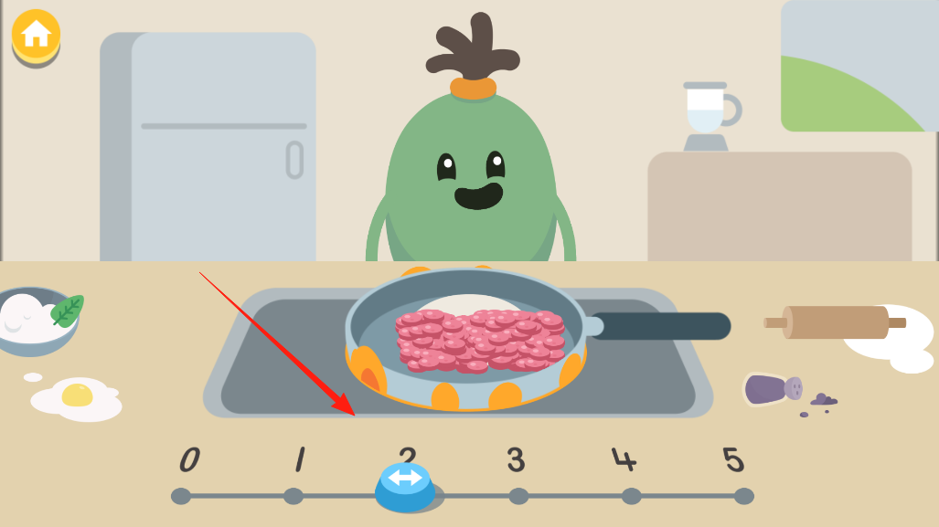 2、食材处理好,把肉放进锅里煎,下方有数字进度条,根据提示滑动按钮,调整火候和时间,看着锅里的肉慢慢变色,把控好烹饪节奏,别煎糊咯。