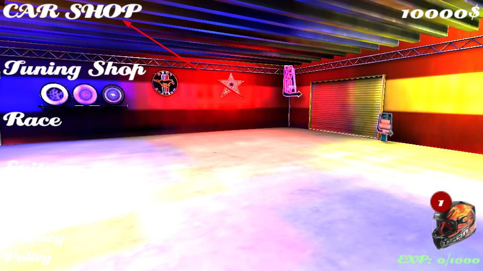 1、进入车库界面,点击CAR SHOP、Tuning Shop等选项,可进行赛车选购、改装,为比赛做准备。