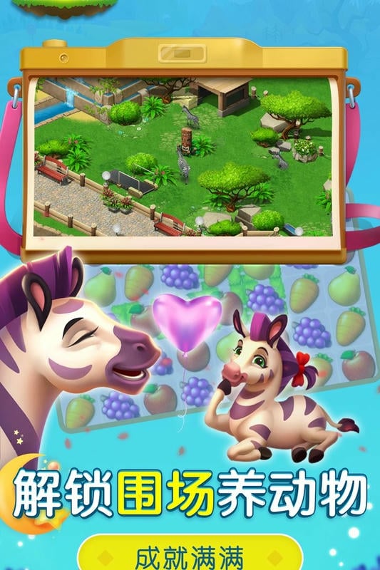 3、通关更高难度的消除关卡,解锁稀有动物和大型游乐设施,让乐园规模不断扩大,成为充满欢声笑语的萌宠天地。