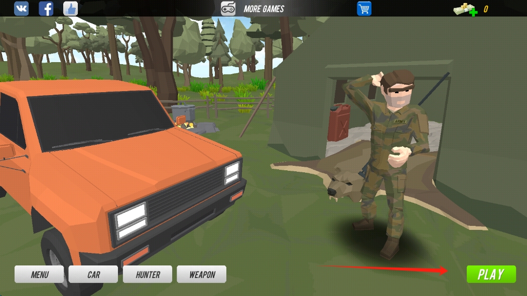 1、点击PLAY,开启狩猎任务,进入野外场景,准备驾驶车辆寻找猎物,点击开始游戏。