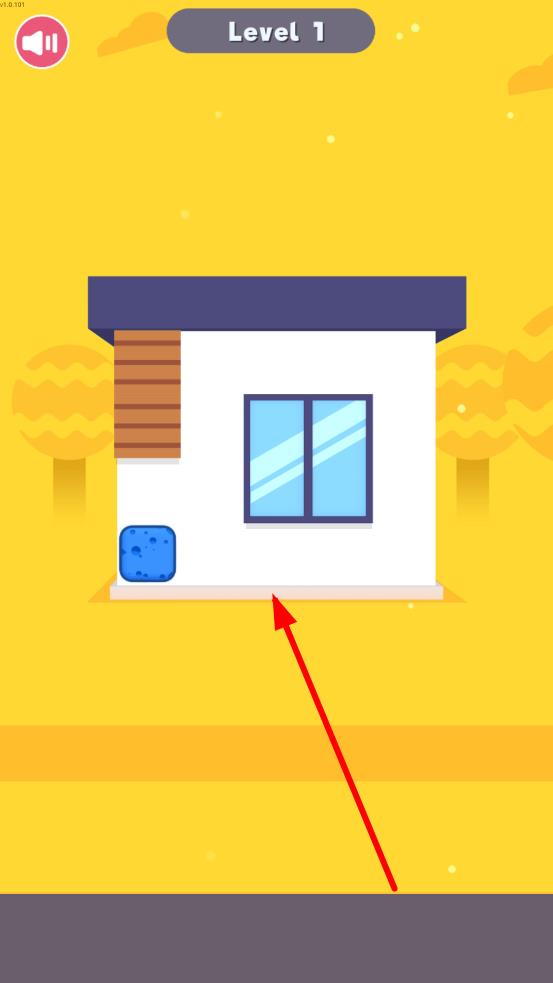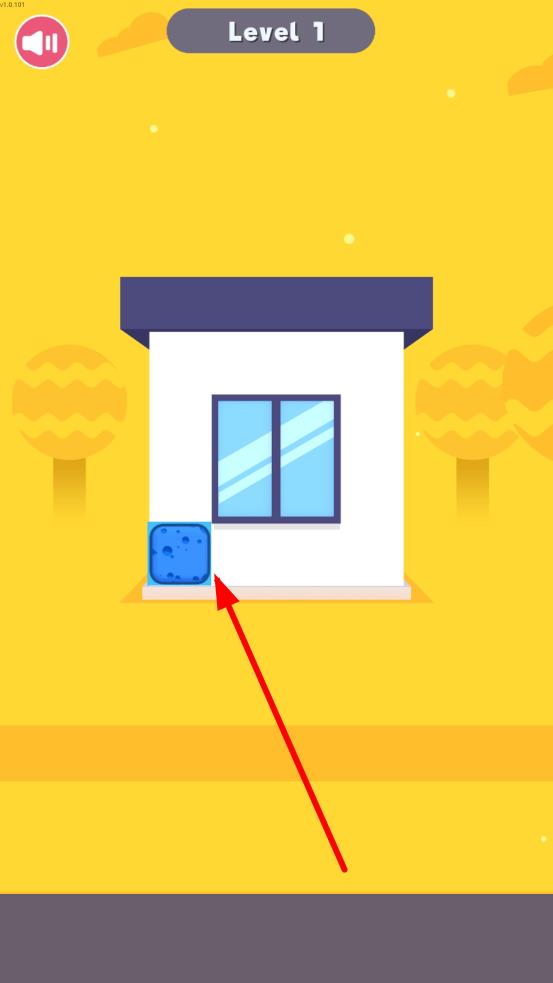 1、进入关卡,点击蓝色海绵吸附初始颜料,随即滑动屏幕,指引海绵覆盖填充,完成房屋装饰第一步。
