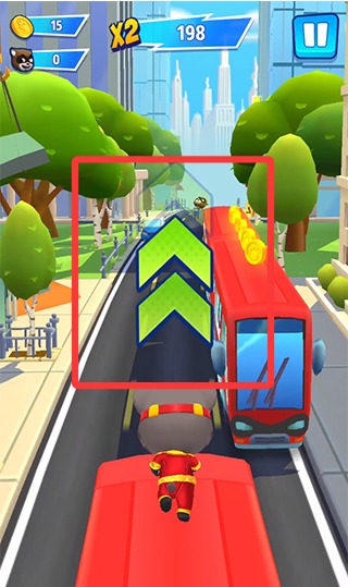 2、跑酷的过程中,我们可以上滑跳过障碍。