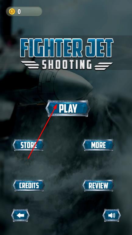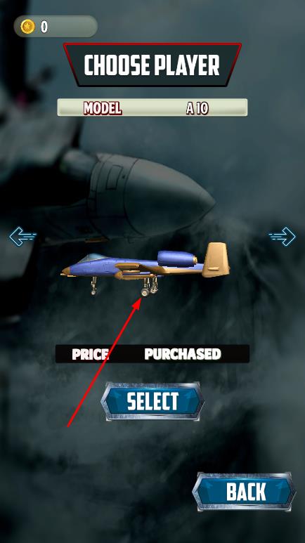 1、进入游戏,在主界面点击PLAY按钮,在选择界面,选择想要驾驶的战斗机,点击SELECT按钮,进入场景。