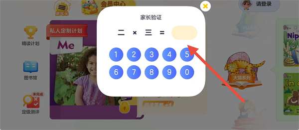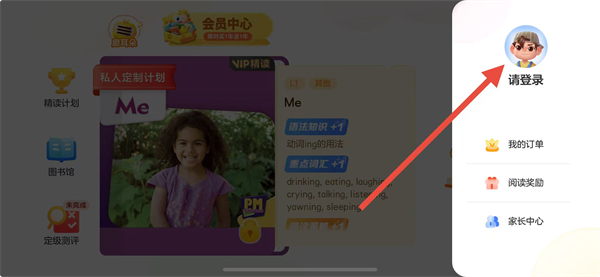 2、在弹出的菜单中,点击头像区域的请登录选项,进入家长验证环节。
