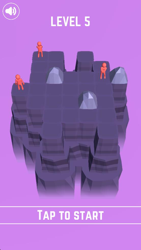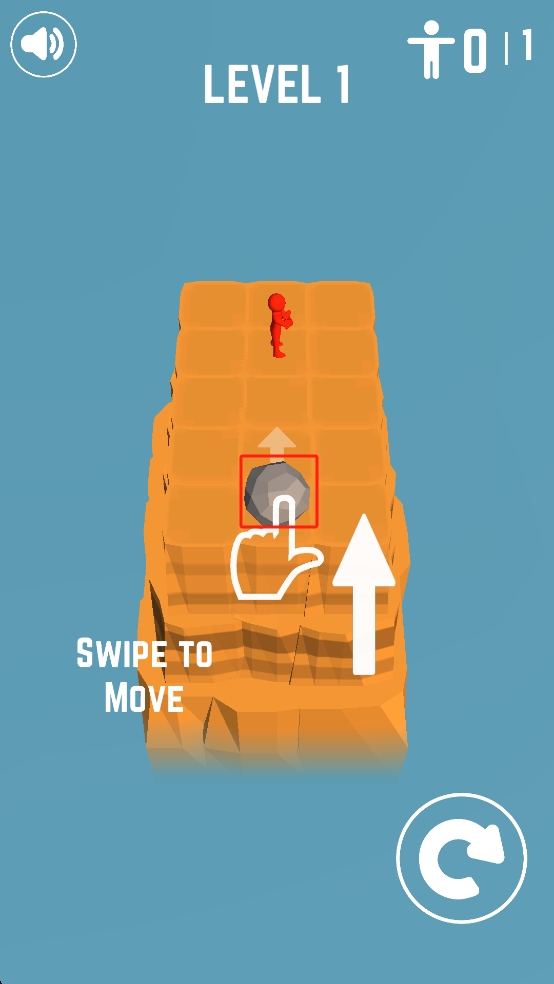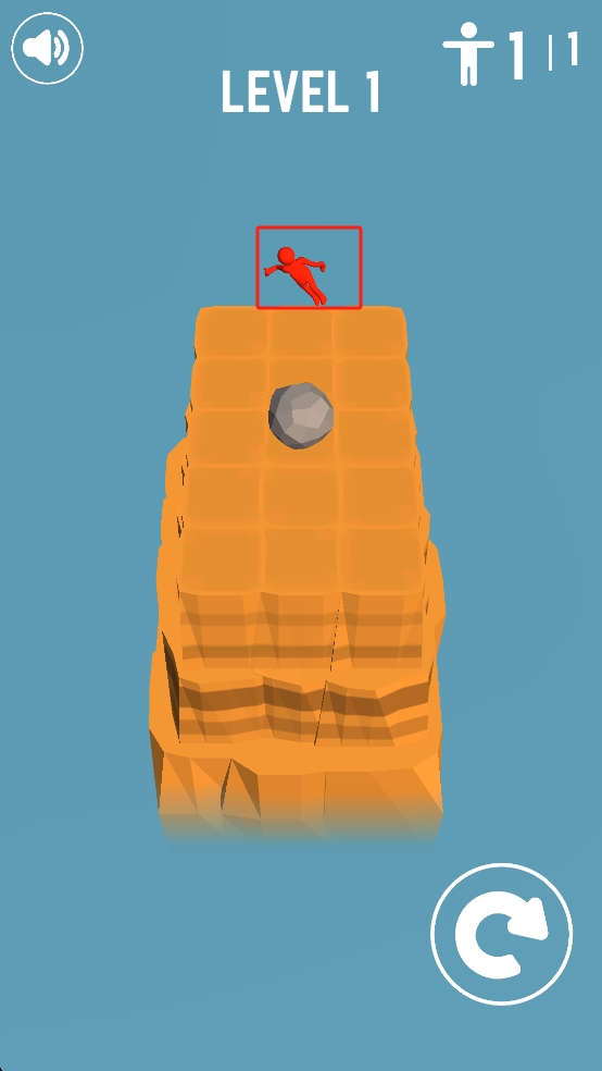 1、按照提示滑动灰色石块向上,借助石块移动推动红色小人掉下悬崖,完成初始的任务目标。