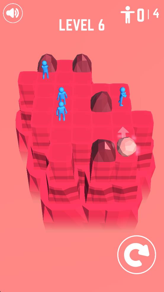 2、石块上滑时,将红色小人挤至上方区域,通过石块的推力改变小人位置,实现关卡进程的推进。
