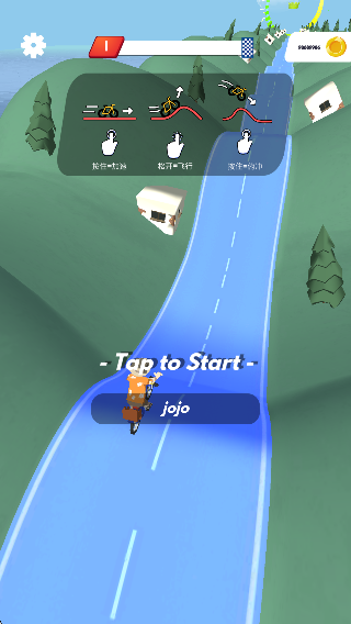 3、下落起飞,完成任务解锁新自行车,获得更强性能的骑行工具,开启新的山丘冒险旅程。
