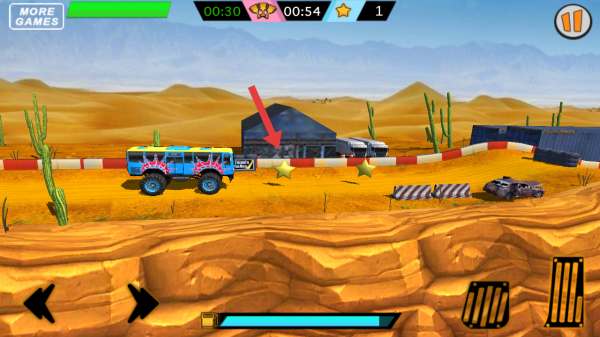 1、进入沙漠的赛道行驶时,需要优先收集箭头指向的金色星星,积累最后结算的分数与奖励。