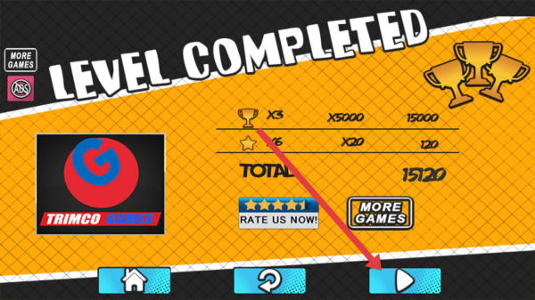 3、当最后成功到达终点则这一关的关卡完成,需要点击界面右下角箭头按钮,进入下一关的挑战。