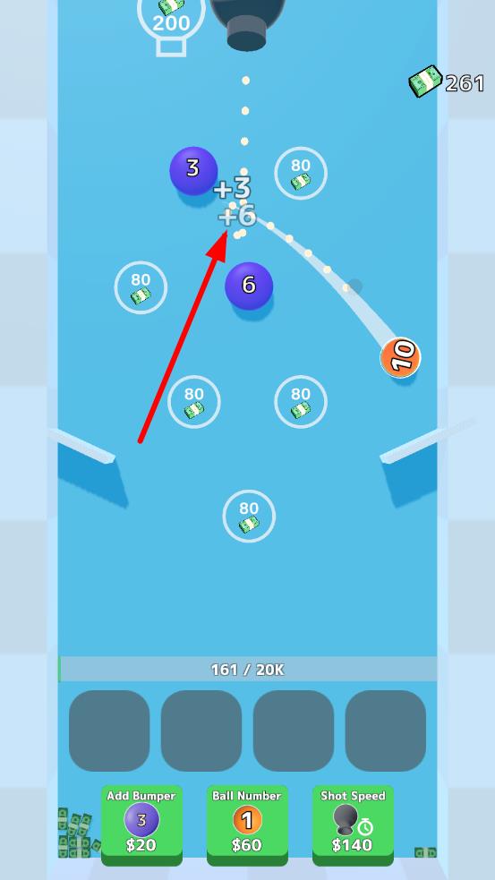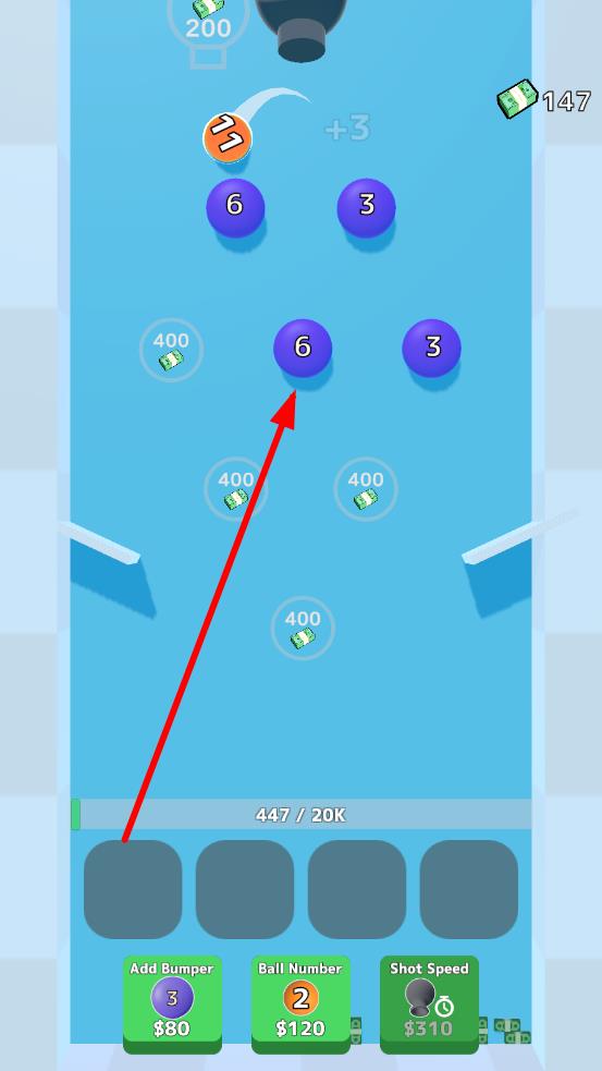 2、利用收集的金币,在底部界面升级数字球数量,放置更多数字求,让弹珠多次碰撞,获得更多金币。