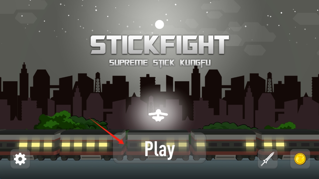 1、在Stickfight启动界面,点击Play,开启火柴人格斗之旅,在城市夜景中展开激战。