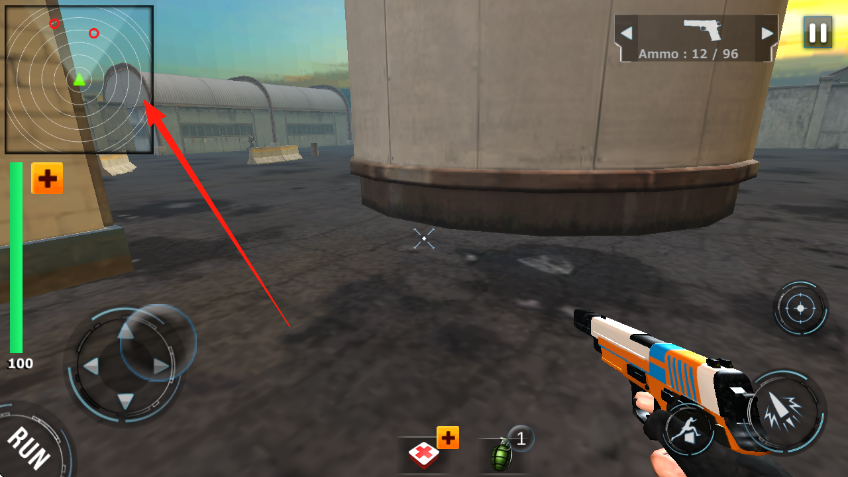 2、发现敌人后,灵活操作摇杆调整位置,利用场景掩体隐蔽,待时机合适,点击射击按钮,消耗弹药攻击敌人,注意把控射击节奏。
