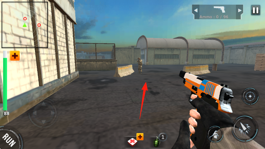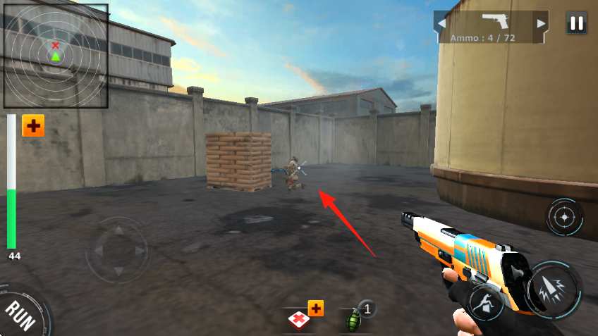 3、持续追踪敌人至新区域,保持移动与瞄准,合理运用手枪火力,在弹药充足时输出,逐步削减敌人血量,完成战斗环节推进游戏。