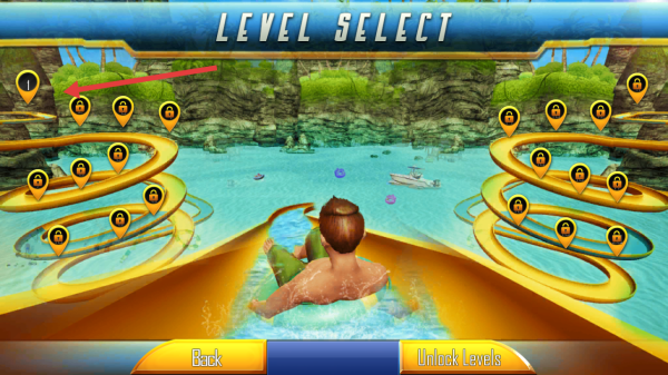 1、在角色选择界面点击Play,进入关卡选择页,选解锁关卡,如带标识,开启水上滑梯冒险。