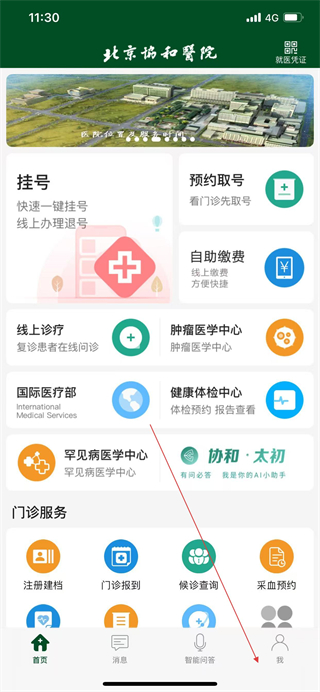1、打开北京协和医院app,点击底部导航栏中的我进入相关界面。